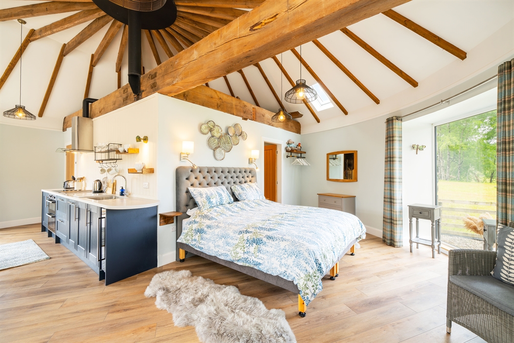 The layout of the accommodation provides privacy so that it is not overlooked by the adjoining cottages. The owner’s deer farm surrounds the properties and extends over the adjoining fields ensuring peace and quiet but still with easy access to all that Perthshire has to offer. This is a perfect spot for a base from which to explore all of Highland Scotland. The location is close to the popular towns of Dunkeld and Crieff, both of which have an excellent selection of restaurants, Art Cafes, independent shops and Art galleries and of course, the opportunity to try whisky tasting fresh from the cask!