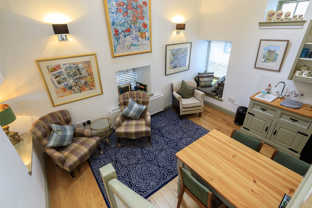 The 17th century cottage known as the Ruin, sits in the garden to the rear of the Gallery, overlooking the orchards of Falkland Palace. Comprises One twin, one double/twin, Living room. Free Wi-Fi .