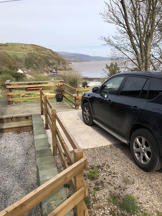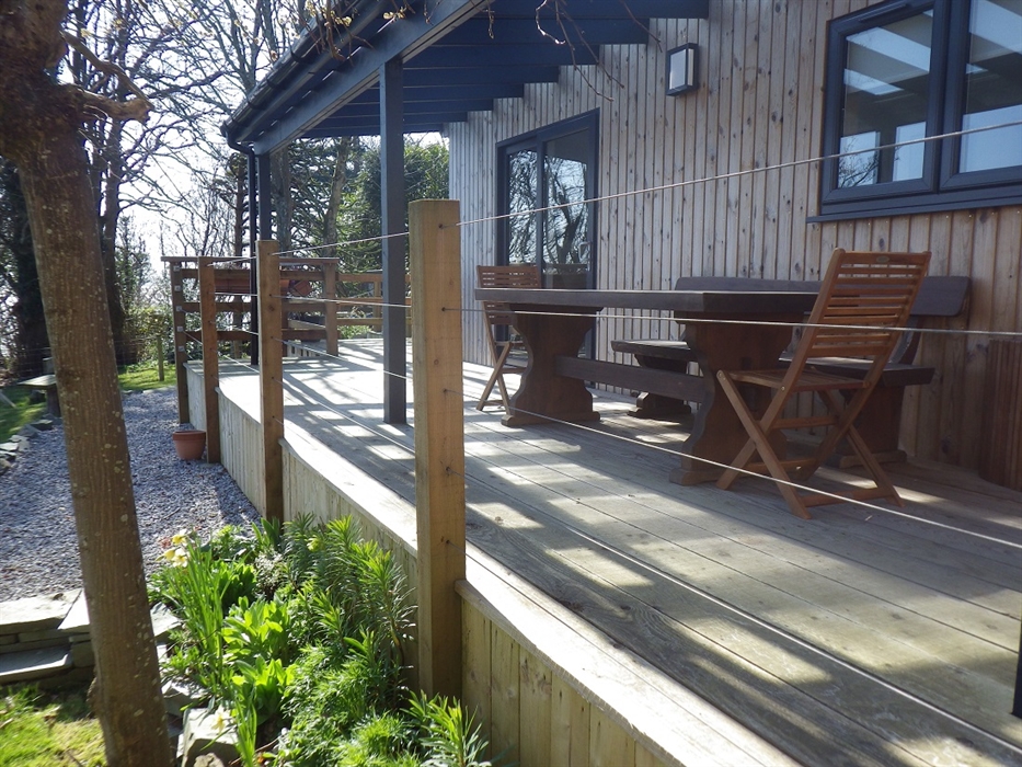 Self catering, Private Holiday Lodge with a private driveway, garden, large roofed deck and Sea Views.