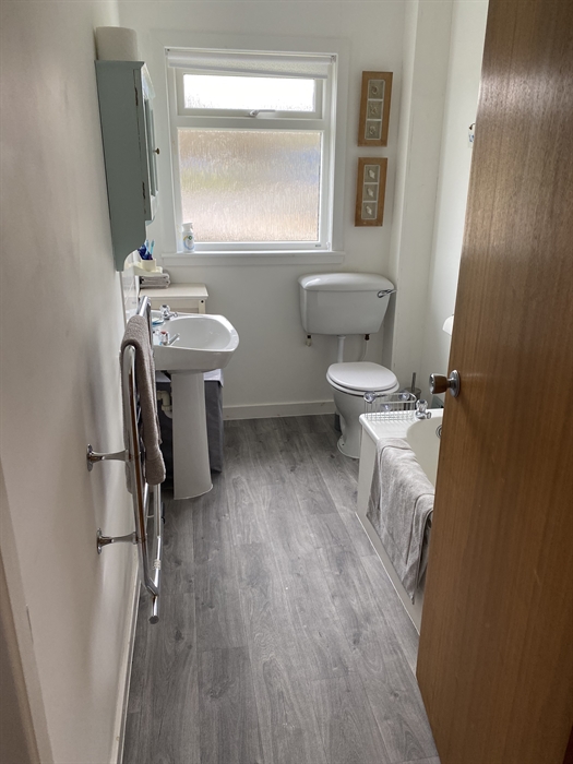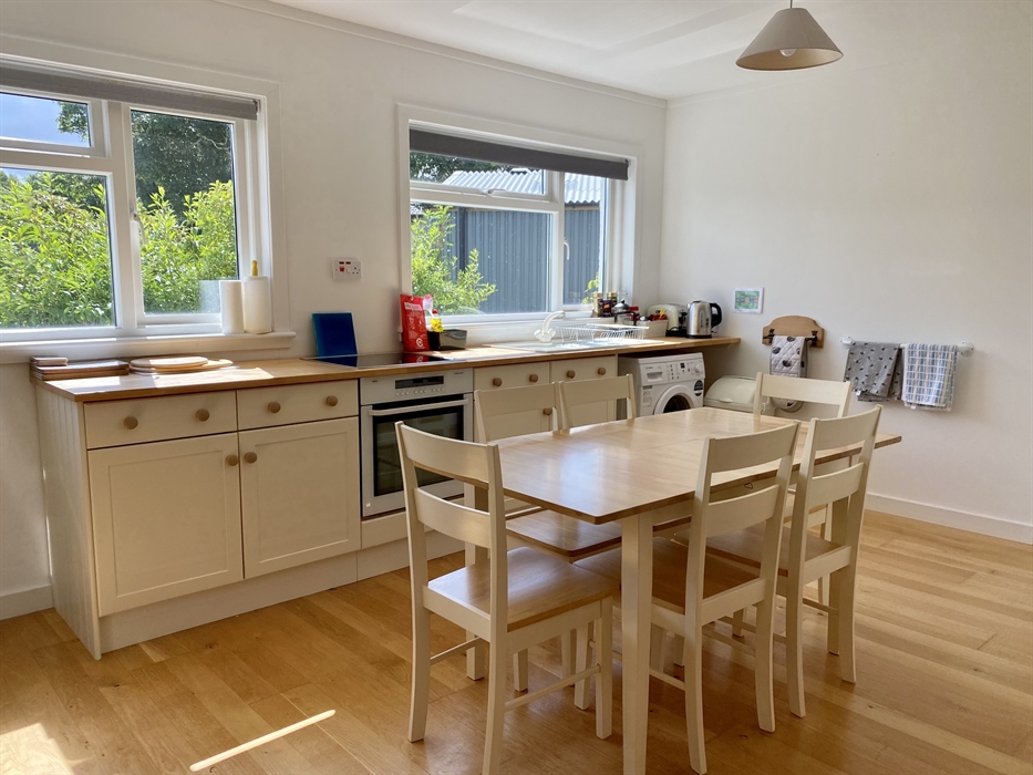 The kitchen is spacious, well-equipped and modern, with seating for six. Includes washing machine, tumble dryer, large fridge/freezer and microwave.