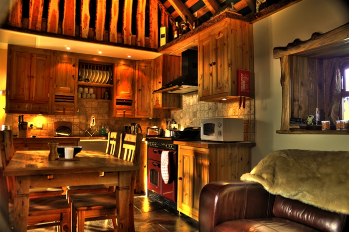 The kitchen contains a full sized Rangemaster cooker complete with Wok burner and griddle which is ideal for cooking the fresh shellfish freely available from the shores around the cottage. A spacious dining table and 4 chairs are provided as well as