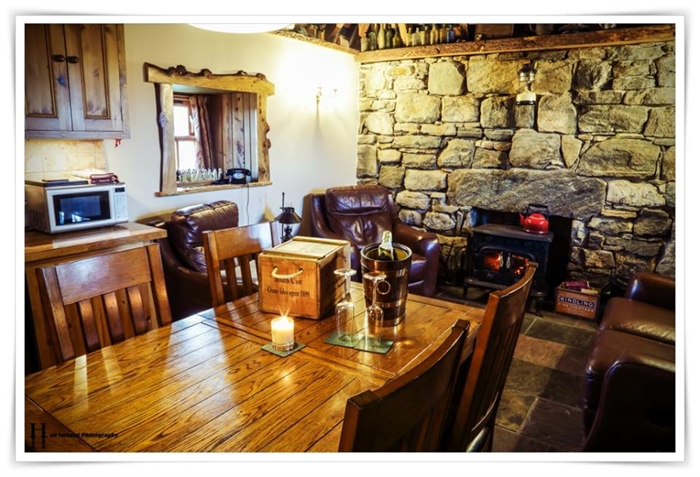 The combined open Shieling lounge and dining area with underfloor heated slate floor, exposed roof beams, peat fire and luxury seating create a traditional and relaxing ambience ensuring you unwind for a truly enjoyable experience.