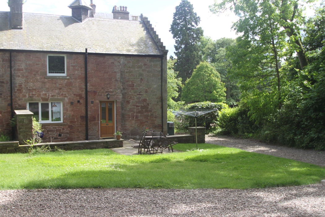 There is a terraced area outside for BBQ's etc a grassed area and lots of woodland paths, one of which takes you via 3 minute walk to the walled garden. The walled garden has proved very popular - it is a very large sunny, sheltered area with apple trees, play equipment for young children, table tennis, badminton, and a ball play area.