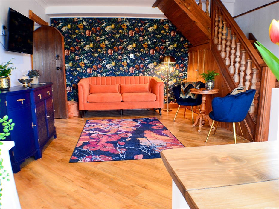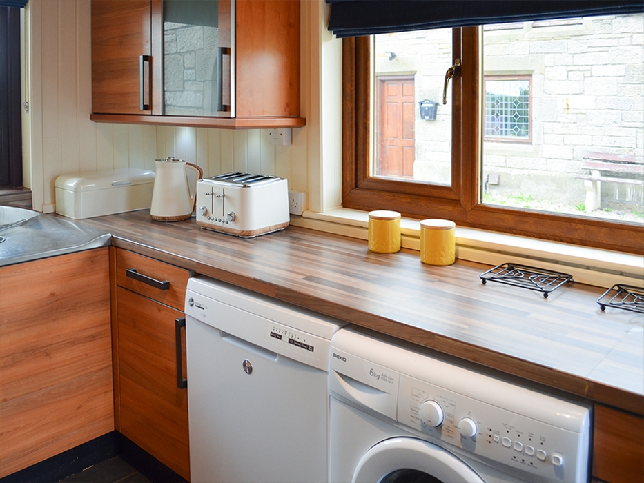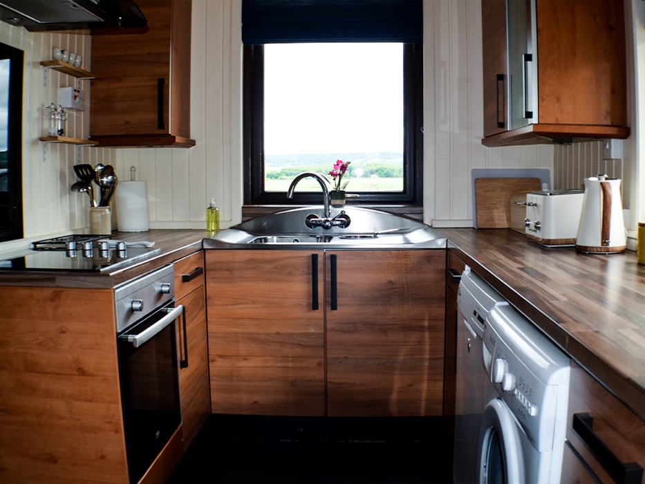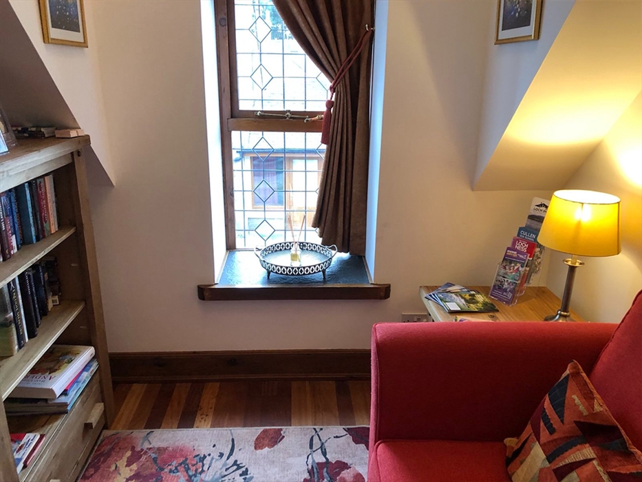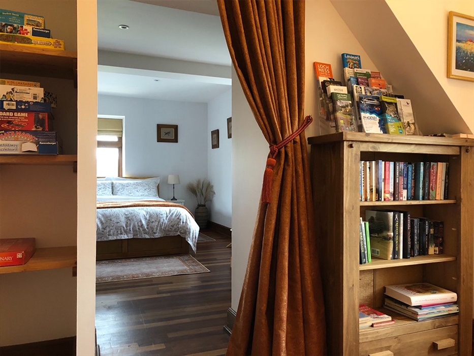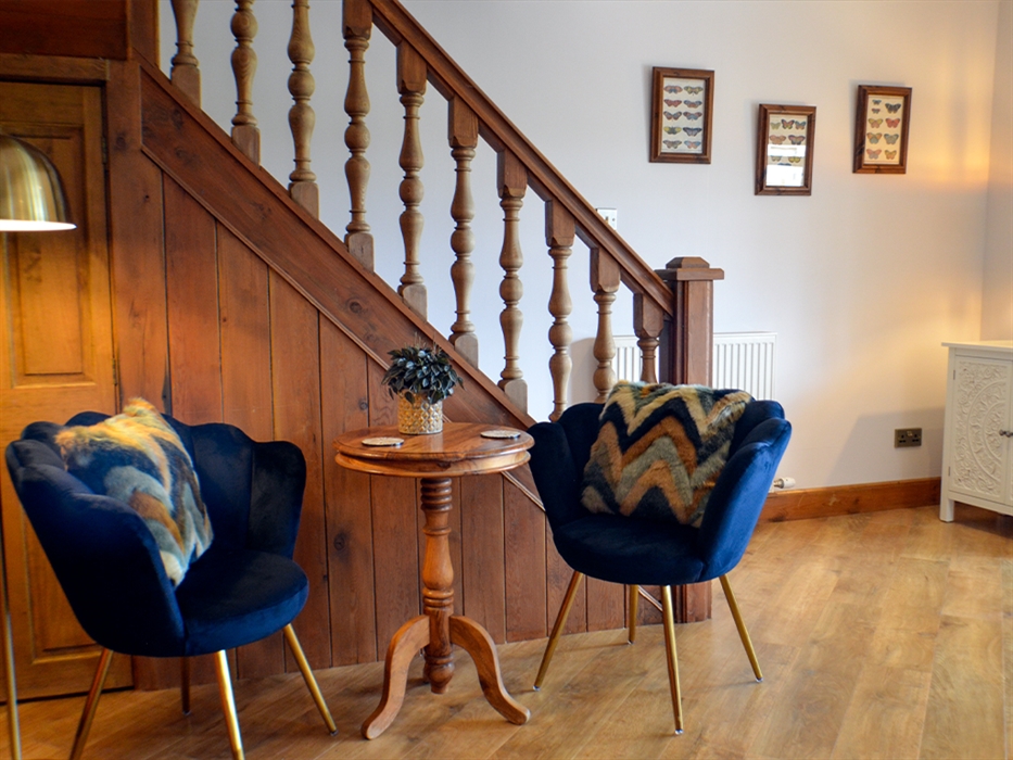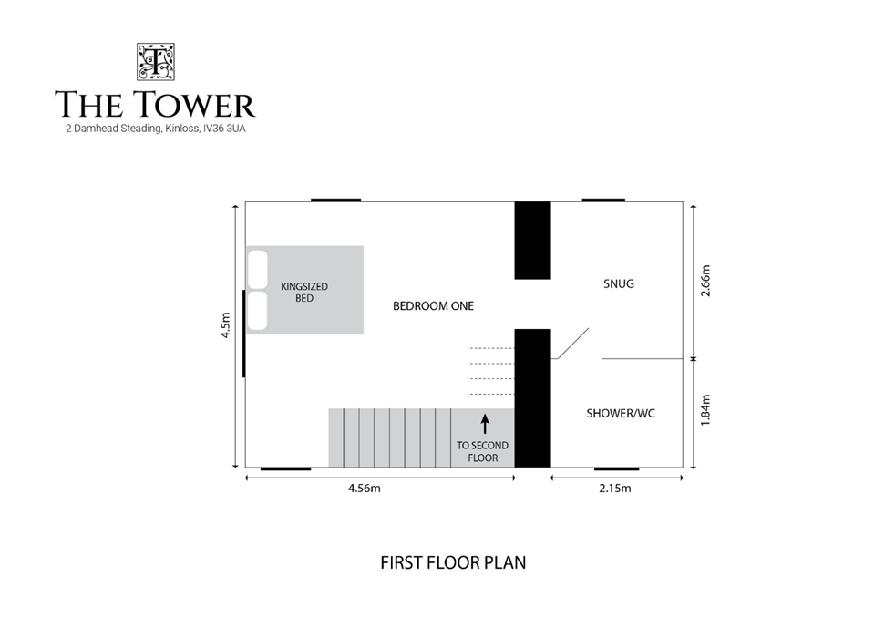 The Tower sleeps 5 + baby. It has its own private entrance and is part of a steading conversion retaining natural features and original stonework. The ground floor has a kitchen and lounge/diner which opens through French doors onto a patio area with seating and beautiful views across the countryside - a place to relax and breathe in the clean Scottish air. The lounge has ample seating and an alcove dining area for up to six people. There is a smart TV with Netflix, Bluetooth speaker, USB charging ports, and free WiFi. The Kitchen is fully equipped with everything you will need for your stay. We provide a welcome pack on arrival with all the essentials to get you started and feel at home. Both our bedrooms have comfortable beds with luxury linen and white fluffy towels. A beautiful wooden staircase leads directly to the first floor master bedroom with a kingsize bed, a cosy snug, and a shower room. The snug has a vaulted ceiling and is the perfect place to relax and unwind. It has a comfy sofa and is furnished with books, local leaflets, and games.