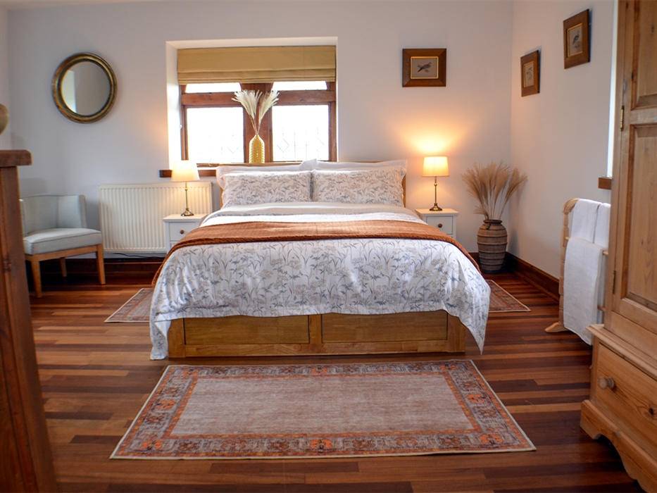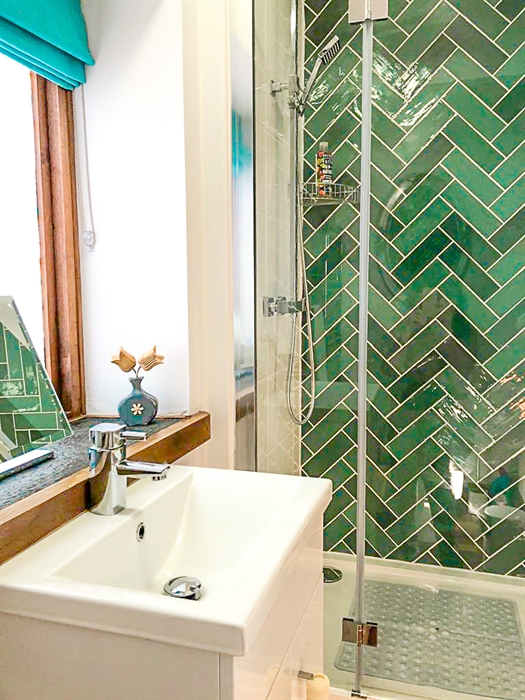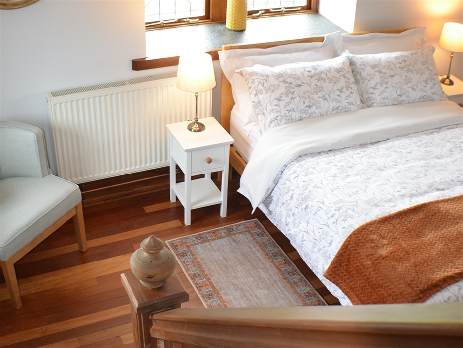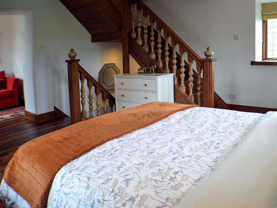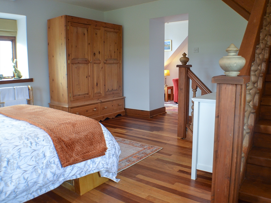The second bedroom is accessed via the master bedroom by climbing another flight of stairs to reach the top floor. This bedroom is light and airy with a double, a single bed, and ensuite shower room with toilet and basin. The design and layout of The Tower means that both bedrooms have breathtaking views over the countryside.