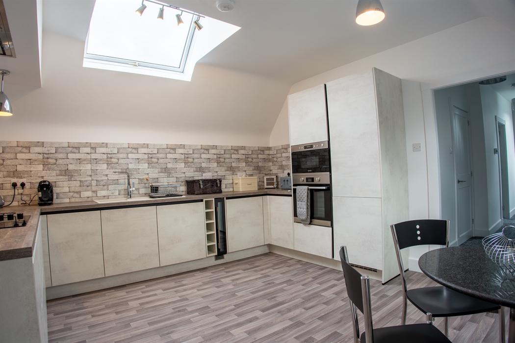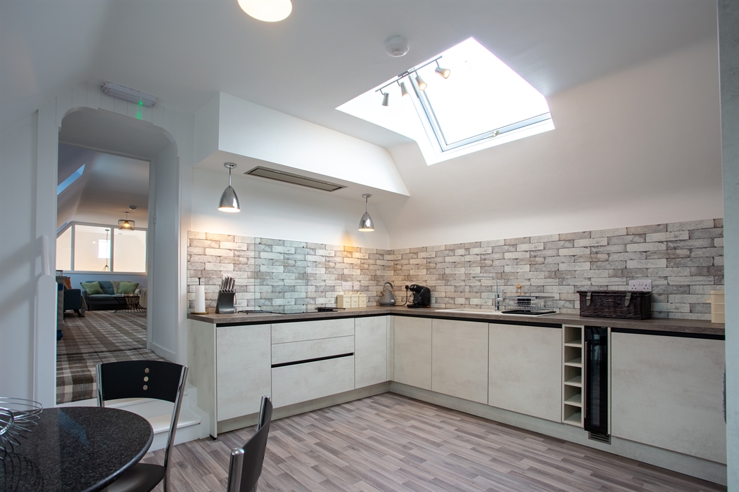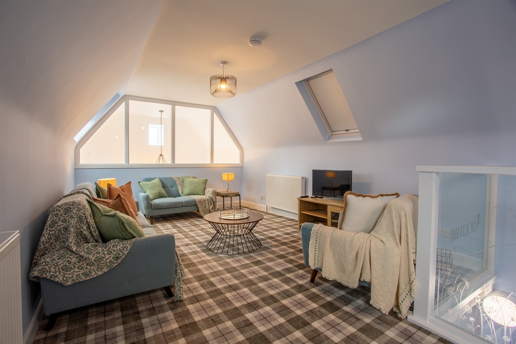 The Urquhart is set over two storeys, with sleeping accommodation on the upper floor for 6 guests with a large Master Bedroom, Twin Room and Double Room, each named after nearby castles, The Barra, The Fyvie and The Mounie. These are complemented by a mezzanine style sitting room, fully equipped kitchen, utility room, two modern walk in shower rooms, and a work space area.