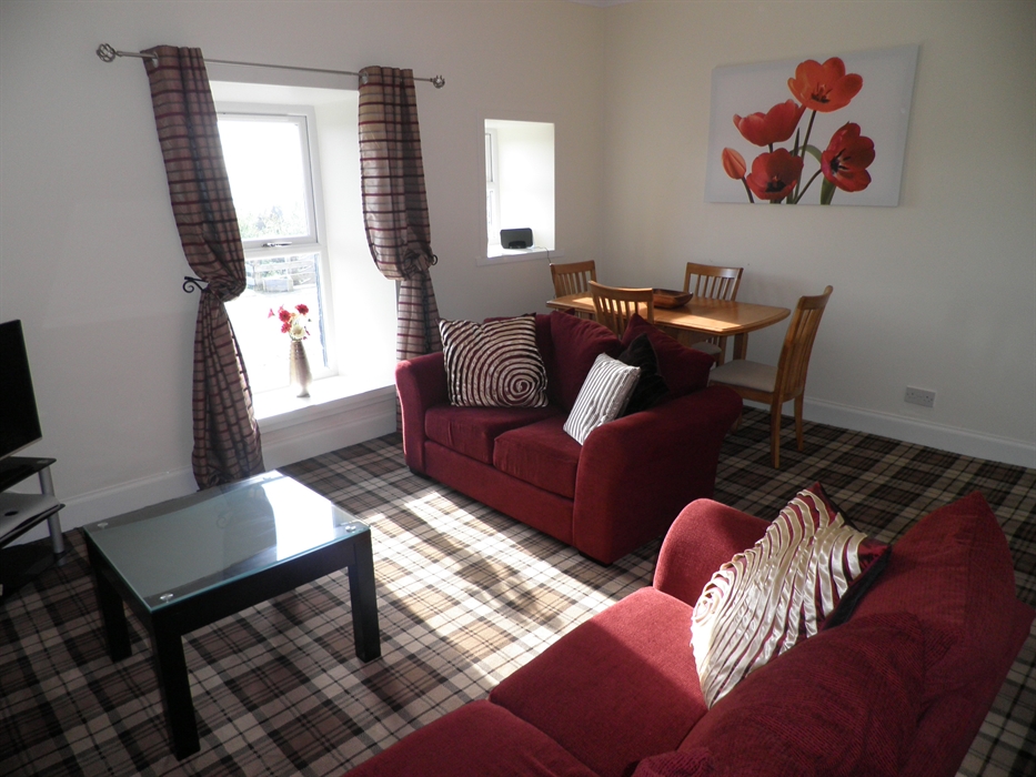 The villa is a delightful semi detached cottage high on the hillside overlooking the Firth of Clyde with panoramic views of the islands of Arran, Cumbrae and Bute. It is situated just outside the village of Skelmorlie in North Ayrshire and is located on a working farm. It forms part of a courtyard yet has privacy from the rest of the farm steadings.