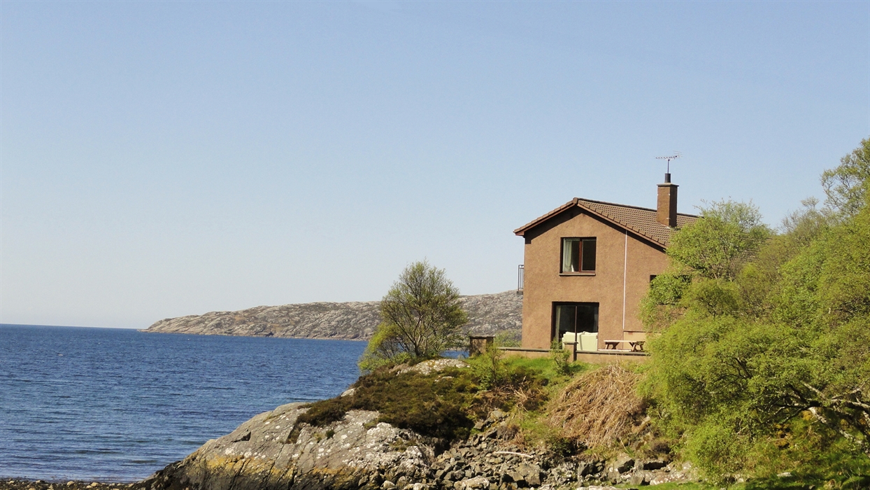 Nestling at the foot of its own 14 acres of bich clad hills, the house perches on a rocky promontory overlooking the water on 3 sides at high tide, offering spectacular views west, over Strathan Bay. This is the perfect place to relax in the peace and tranquility of the old croft or to use as a comfortable base from which to explore the areas many beautiful and stunning attractions.