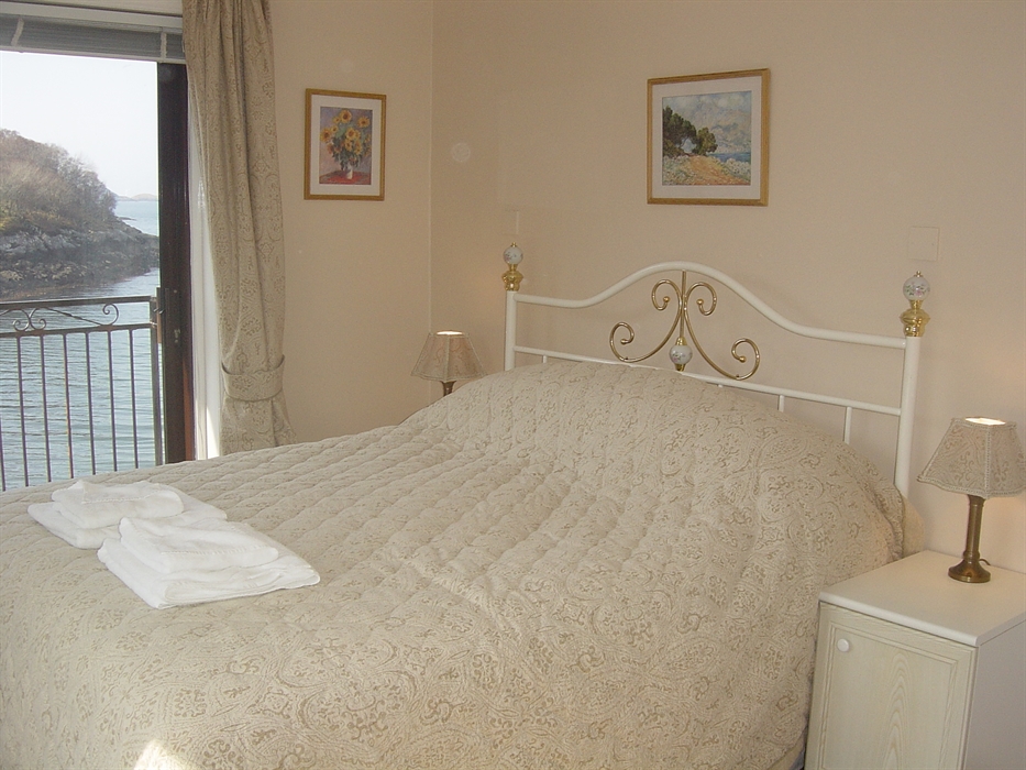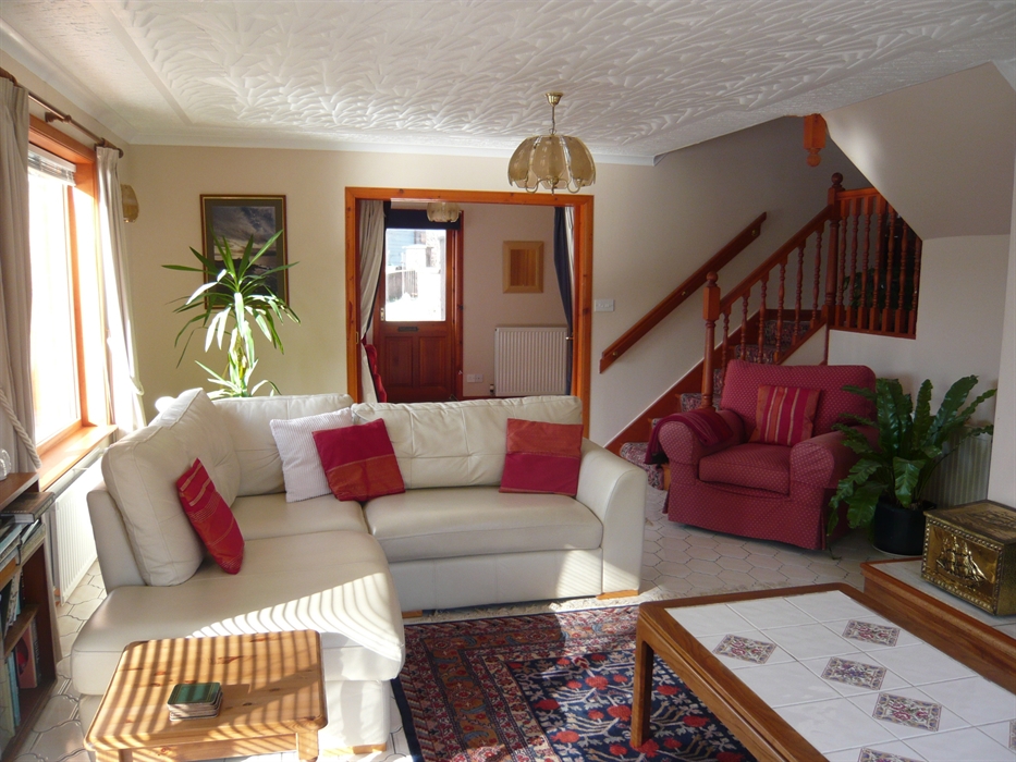 The house is split on 3 levels boasting a mix of modern and antique furnishing. The spacious lounge with an open fire, Free Wi-Fi TV, VCR, DVD, CD player and the adjoining den, with a hideaway double bed are on the ground floor. The well equipped kitchen, dining room, central hallway, shower room and twin bedroom are on the mid level. The bathroom, 1 twin and 1 double bedroom, each with a balcony overlooking the bay are on the upper level. High standard of cleanliness.