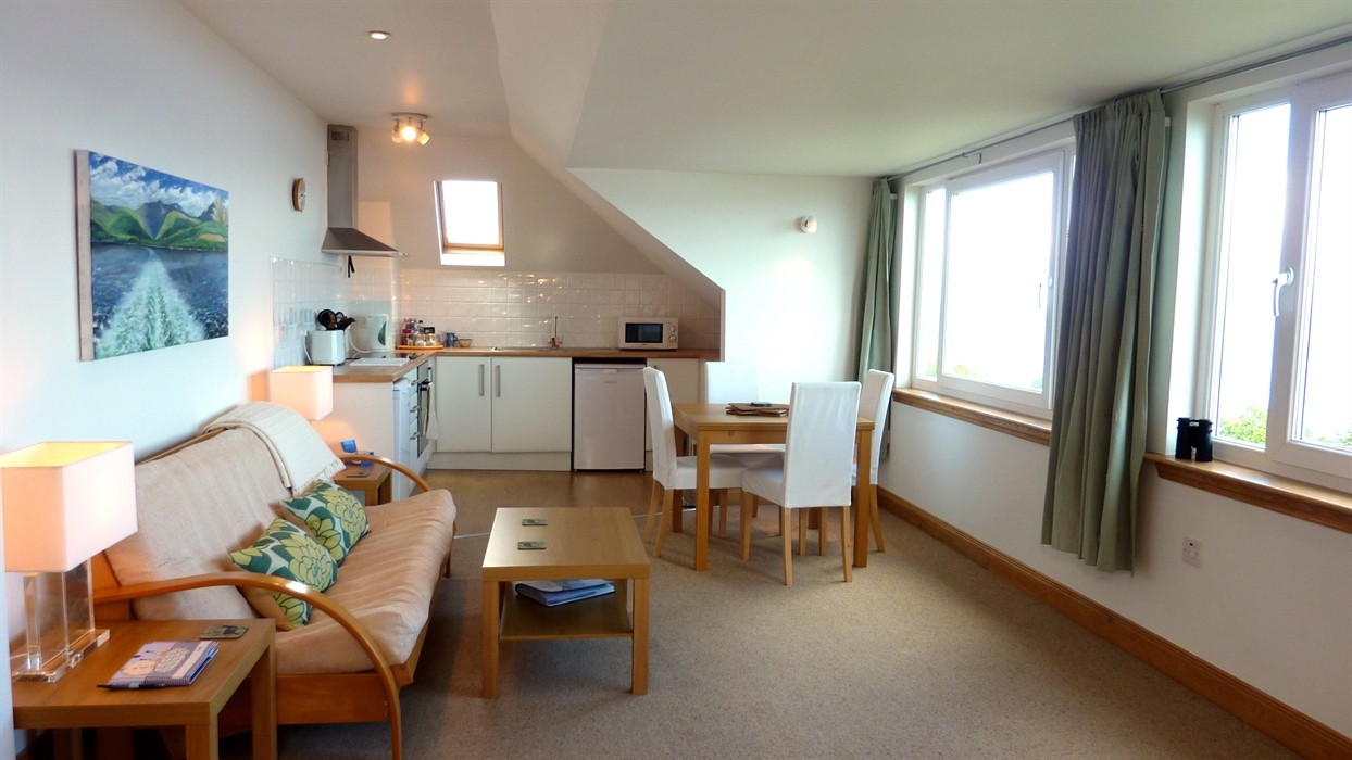 Tigh-na-Blair Apartment is a newly renovated upstairs apartment in the picturesque village of Corrie, Isle of Arran. Built in an elevated position on the seafront, with large windows, the apartment boasts outstanding panoramic sea-views.