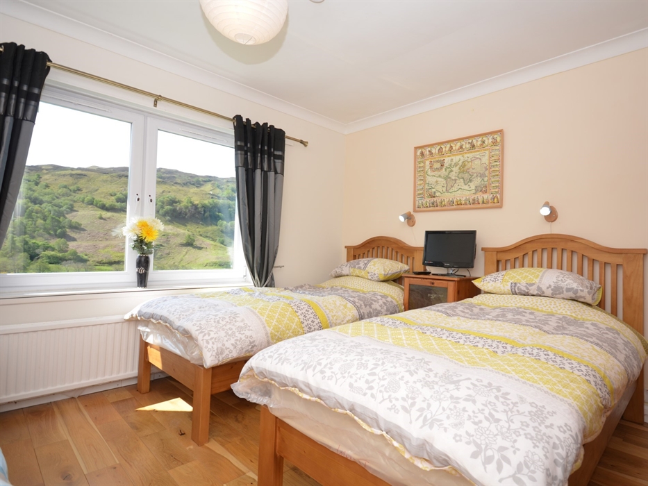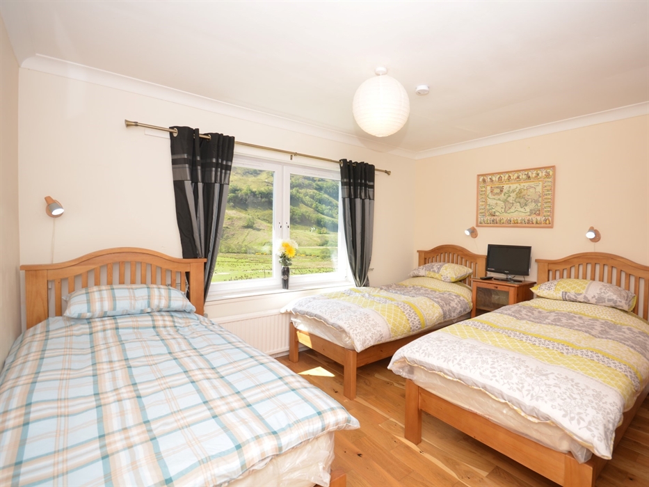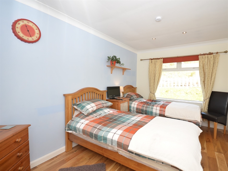 This spacious well-presented property benefits from spectacular glen views towards the Isle of Skye and the Sound of Sleat. Perfect for families and groups seeking a Highland Retreat in this Area of Outstanding Natural Beauty with an abundance of wildlife. Located in the picturesque village of Glenelg amidst one of the most scenic areas in the Scottish Highlands. The village boasts a wonderful friendly Inn and the famous 10 minute local ferry trip to the magical mystical Isle of Skye. Walkers and Munro baggers are spoilt for choice with numerous local glens and nearby mountain ranges to explore and water sports enthusiasts will be delighted with sea kayaking available in Glenelg bay. Visit the splendid Sandaig Islands local Brochs and Jacobite barracks. Enjoy a tip to Dornie and visit Eilean Donan castle. The pretty villages of Plockton Applecross and the Kyle of Lochalsh are all within easy reach. The accommodation is all on one level offering FIVE bedrooms: 1 king-size 1 double 1 twin with DVD 1 triple with DVD and 1 single. Bathroom: with Jacuzzi bath and WC. Shower room: hydrotherapy massage/steam shower cubical and WC. Lounge: with open fire (first basket of coal included) and TV/DVD CD/iPod dock board games dvd s and books. Kitchen/diner: well-equipped with electric oven and hob microwave fridge/freezer dishwasher washing machine and tumble dryer. Additional Info:- hairdryers iron and beach towels available. Outside: enclosed garden with seating area and BBQ. Amenities: ample off-road parking. Bed linen towels central heating and free Wi-Fi included. Regret no smoking. 2 dogs welcome. Location: pub shop health centre and beach within walking distance. Arrival: 4pm. Departure time: 10am.