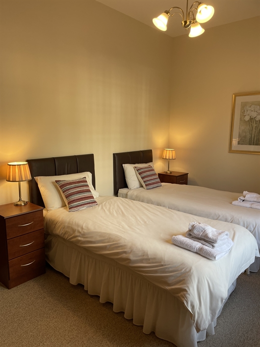COACH HOUSE 4 & 5 - are the same size of property mirror image, the entry is on street level and offers 1 double bedroom with a walk in shower, high raised toilet, lower sink with handrails. 1 Twin with ensuite, Fully fitted dinning kitchen and separate utility. On the split level 3 steps down there is 1 Twin Room, Main bathroom with a bath and shower and a spacious lunge with french doors leading onto a private pation with outside seating. Please note due to the 3 steps down to the lounge area this is not suitable for a wheelchair user.
