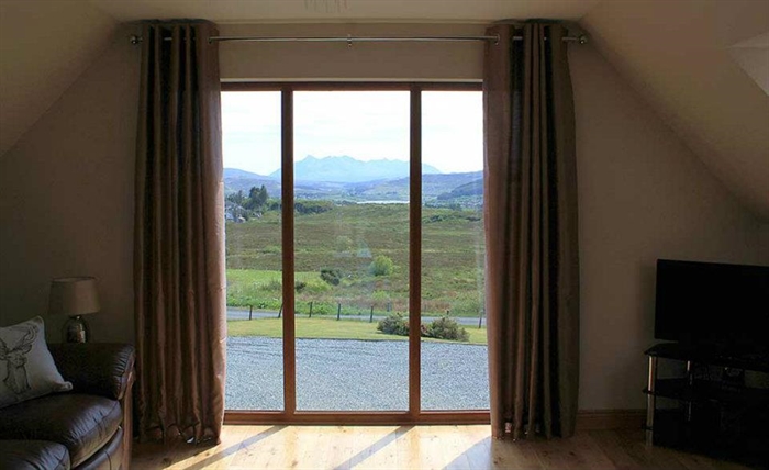 The living area boasts one of the most breathtaking views of the Cuillins Skye has to offer through floor to ceiling windows - a haven of peace and tranquility.