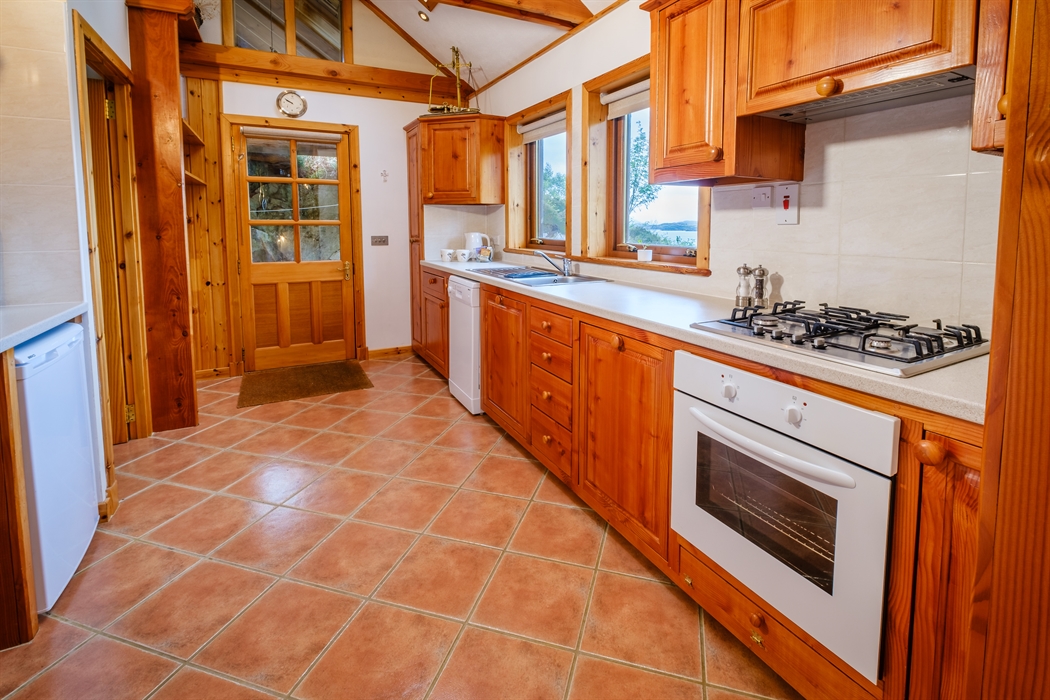 Kitchen includes: fan oven, gas hob, dishwasher, fridge, freezer,