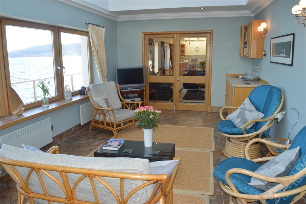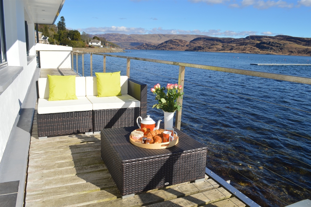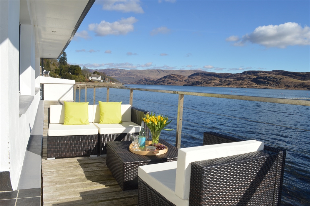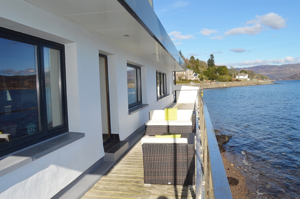 This beautiful modern waterside home is situated in the picturesque village of Tighnabruaich. Built over the seawall in 2006, Waterside Villa has an 18 metre balcony that has fabulous views across to the Isle of Bute.