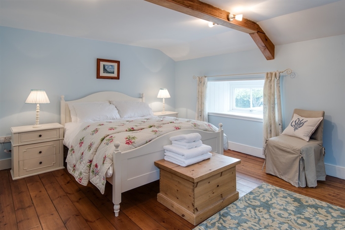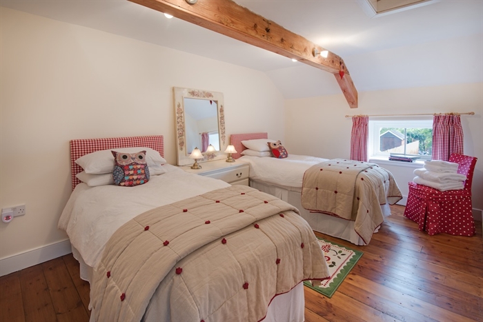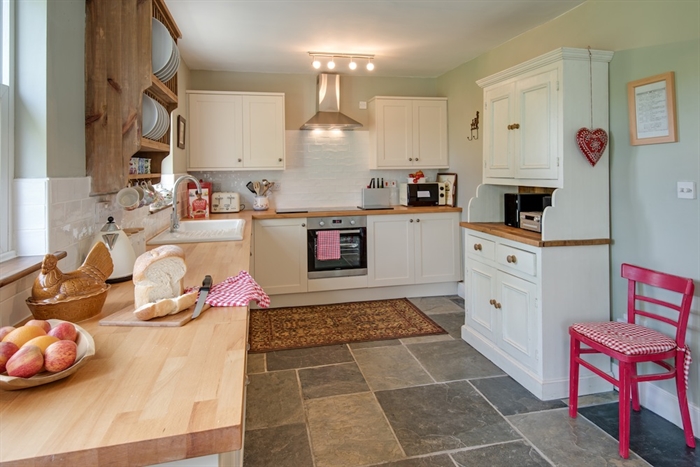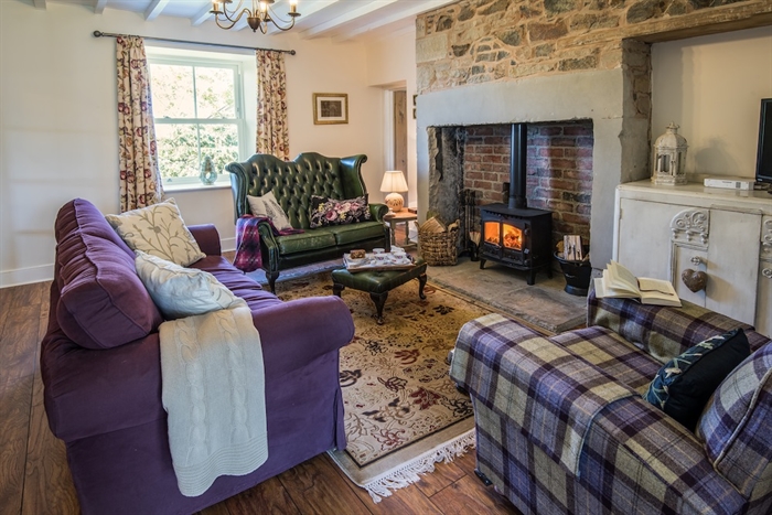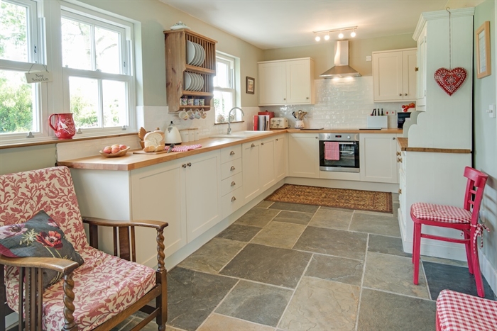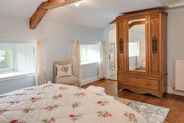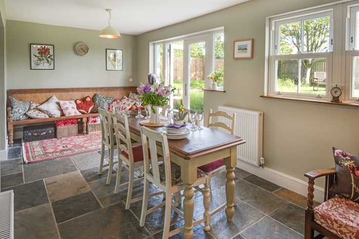 The three bedrooms (one ground floor) are presented with pretty throws and soft linens while characterful deep window recesses, exposed beams and wood panelled walls just add to its cosy country charm.