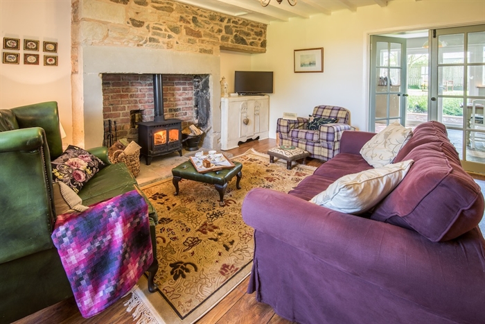 Beamed sitting room with ample seating set around an impressive inglenook fireplace and a large wood burning stove with initial supply of logs provided. Flat screen TV with integrated DVD player, CD player/docking station/radio, Nintendo Wii games console and a good selection of books for use by guests.