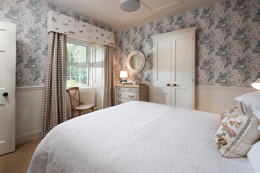 Formerly the gate lodge for the wider estate, the cottage sits on one level with a cosy sitting room, a large double bedroom with king size bed, and a pretty breakfasting kitchen which leads out to a private east facing garden - perfect for sunny mornings with coffee and croissants.