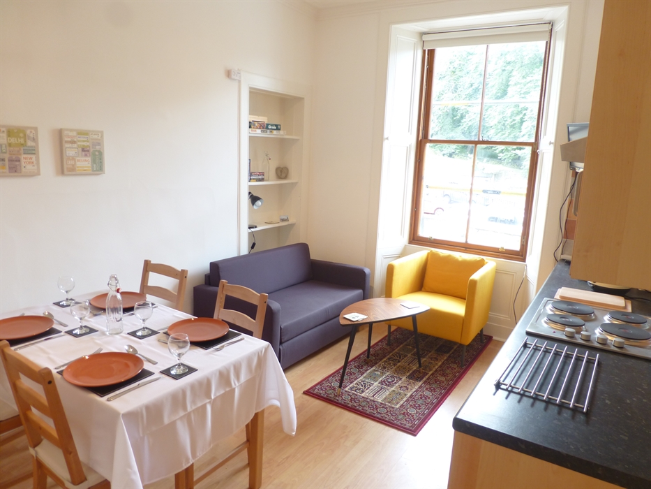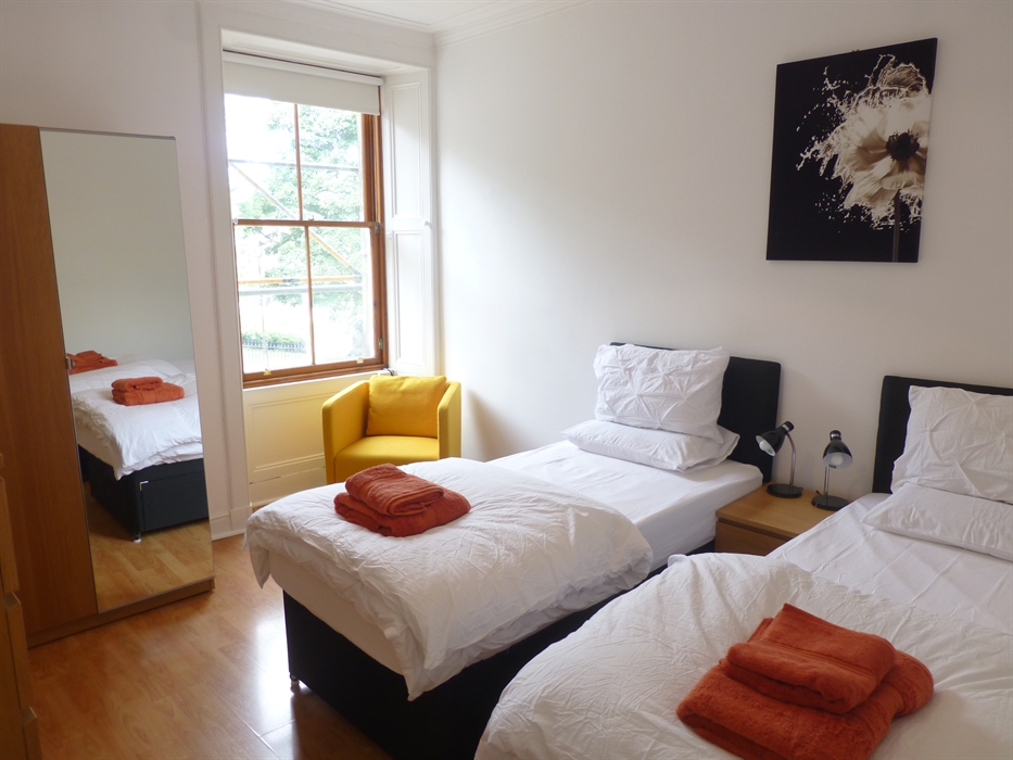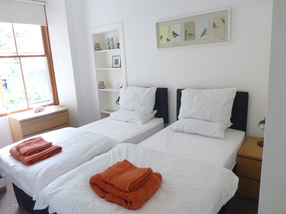 This holiday home is a two-bedroom apartment on the first floor with a sunny, leafy outlook to London Road Gardens. The apartment is within easy walking distance of the major tourist attractions, festival venues, shops, nightlife and transport connections. It's a 5-10 minute walk through over Abbeyhill to The Palace of Holyroodhouse, the Scottish Parliament and the foot of the Royal Mile, or a similar distance through London Road Gardens and Calton Hill to Princes Street.