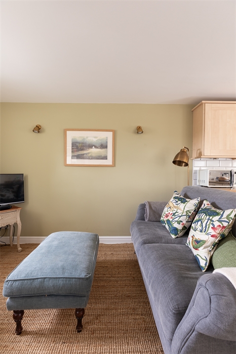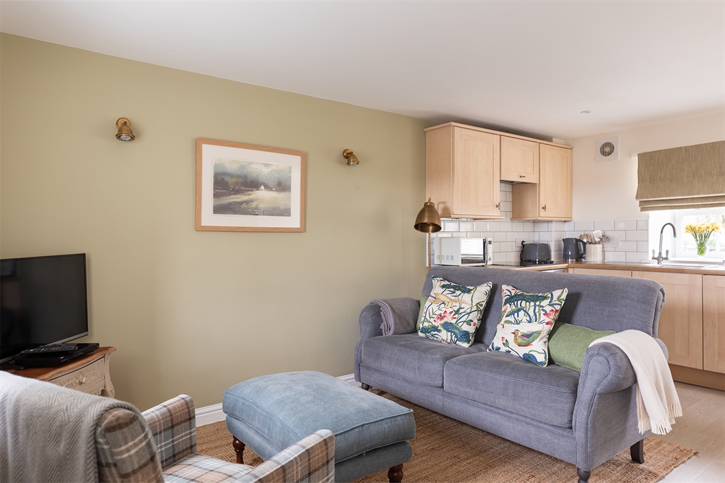 Small but perfectly formed, Woodman’s has all the essentials required of holiday living. The open plan sitting room/kitchen is a studio style space - warm and functional with comfortable furnishings and finishes. The kitchen is well equipped with a dining space for two, and a rear door leads into a large open garden where you can watch the comings and goings of the abundant wildlife.
