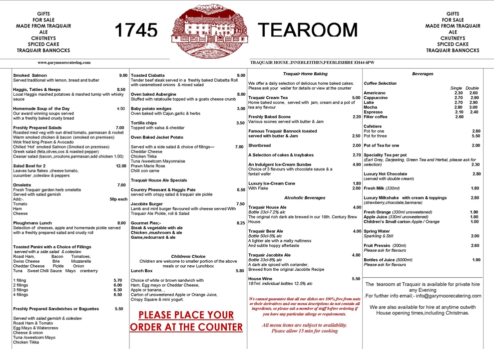 The 1745 Cottage Restaurant is situated in the old walled garden and has delicious home made soups and lunches as well as tempting scones and home baking.