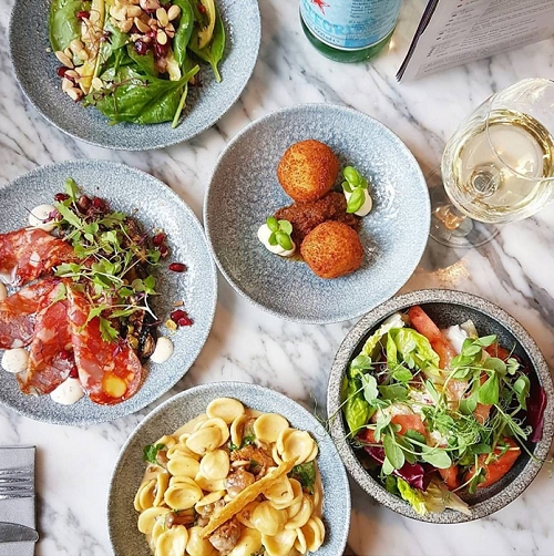 A vibrant, buzzy, award winning Italian family run restaurant in one of Edinburgh’s most beautiful rooms. This former banking hall is modelled on a Florentine Palazzo and delivers everything you want from a fabulous, authentic contemporary Italian restaurant. We source our produce direct from the markets in Italy and change our menus every 6 weeks with the seasons. Our homemade pasta is made fresh every morning with our delicious Puglian focaccia. Our food is perfect for sharing. A fun, informal and very special family restaurant. Join us for breakfast, lunch, cocktails and dinner