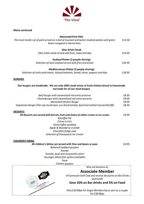 The View restaurant is situated on the first floor of Eyemouth GC clubhouse which is perched on the top of Gunsgreenhill overlooking the North Sea, offering a spectacular 360 deg outlook.