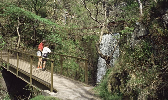 The glen was once the centre of a busy textile industry and the remnants of an old dam and numerous workshops can be spotted. There are a number information signs to tell you about the history of the area.