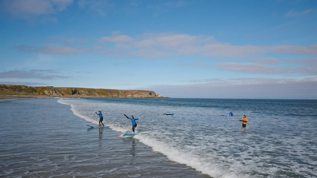 Lesson locations include Cullen and Sandend, stunning sand beaches with clean water and ideal waves for beginning and improving surfers. The north-facing bays consistently provide mellow green waves and long rolling whitewater which are ideal surf conditions for practicing and improving your skills.