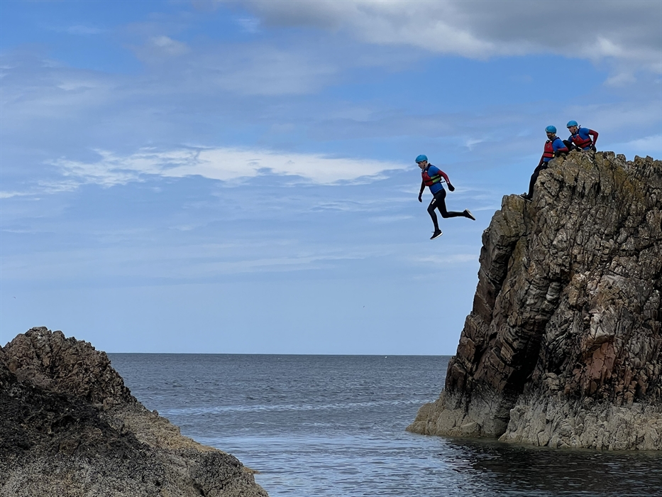 Portknockie offers a world-class venue for coasteering, an adventurous experience immersed in the changing marine environment as we swim, climb, and jump in along our route to the iconic Bow Fiddle Rock.