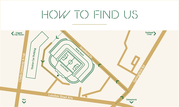 We recommend booking your tour in advance of your visit to the stadium to avoid disappointment should the tour be full on arrival. Visitors are advised that the tour will entail a degree of walking and climbing steps and are advised to wear appropriate clothing and suitable footwear. Car access to the stadium is via Janefield Street off Springfield Road, please drive under the North stand and bear left parking in the car park near to the Superstore. The entrance to the stadium tours is to the left of the main reception in the South Stand.