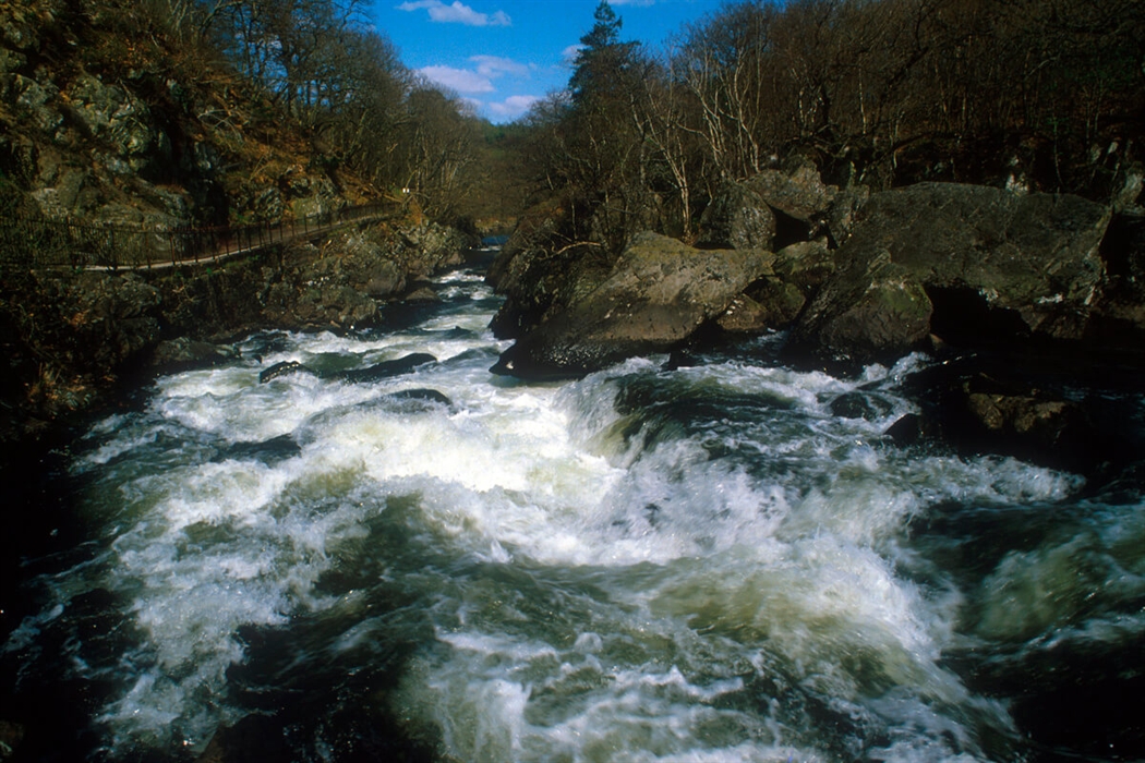 The impressive Falls of Leny can be seen near the village of Kilmahog north west of Callander in the Trossachs National Park.
