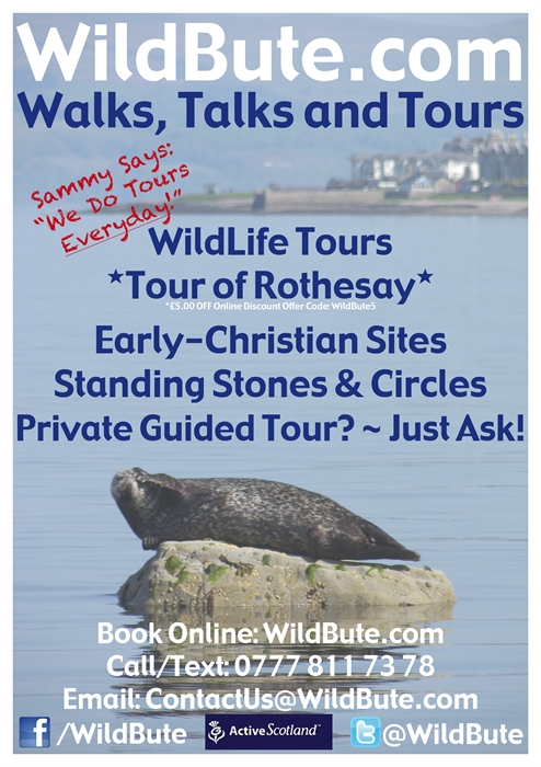 Through Visit Scotland we are able to provide a 'Special Offer' of £5.00 OFF when you book your WildButeTour Event (shown below) 'Online' at WildBute.com using the Voucher Code: