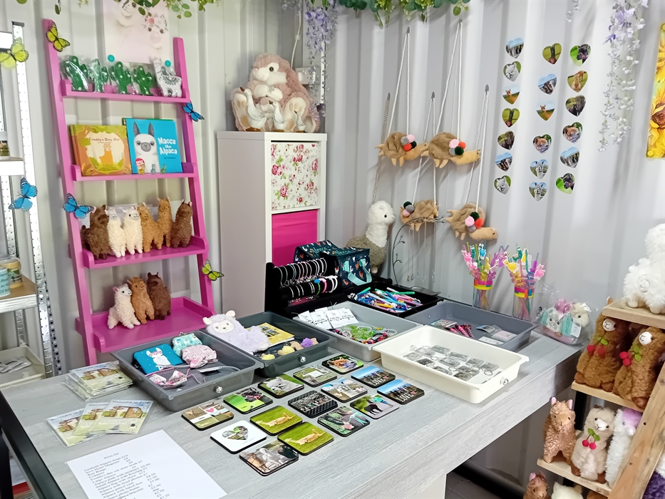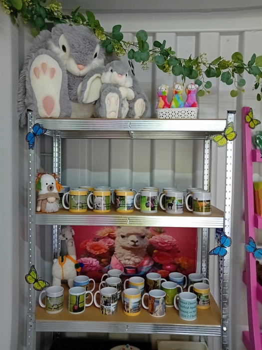 Gift shop with various , Alpaca soft toys , Leafield Alpaca mugs , key rings , coasters, Alpaca Novelties , Leafield Alpaca Candles etc,