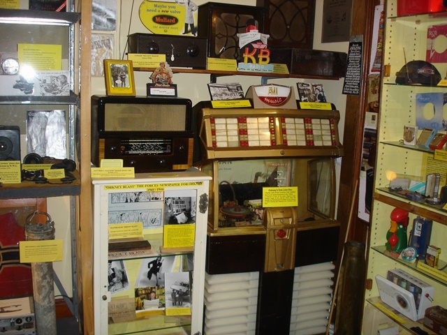 The Museum issues a certificate for those who type their name on the morse key. (Adults are especially keen on this!) Another display is dedicated to novelty radios which take the various shapes of tomato Sauce bottles, Breakfast Cerials, Cameras, Computers and even an Apple! Orkney’s first Juke Box from 1952 stands nearby.