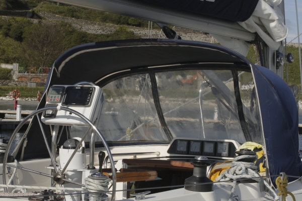 “Moonsong” is a particularly well-appointed Bavaria Vision 44 Deck Saloon. She is spacious, has a bright interior and lots of head room. She is equipped with in-mast reefing and has twin wheel steering. All the navigation instruments are Raymarine and a new 12 inch B&G colour plotter was recently fitted. She has a most powerful Volvo 75HP Turbo Diesel so when it’s calm you can still make 7kts plus to your destination.