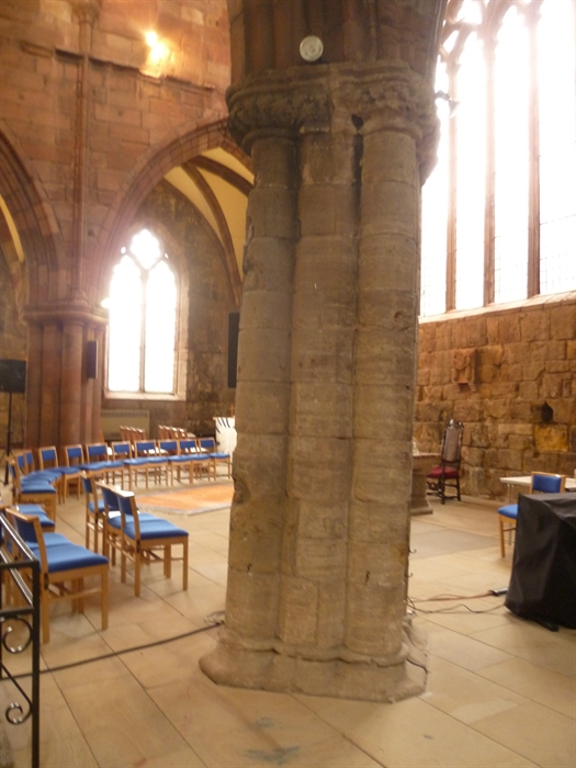 Wonder at the fact that from 1549 up until the early 1970s the whole of the east end of this cross-shaped church, including the transepts which stick out to the sides and the choir which sticks out eastwards, was a roofless ruin and it was possible to look right through from side to side. It was ruined during The Siege of Haddington. You can read about this battle and the restoration of the building on panels inside the church or on our website.