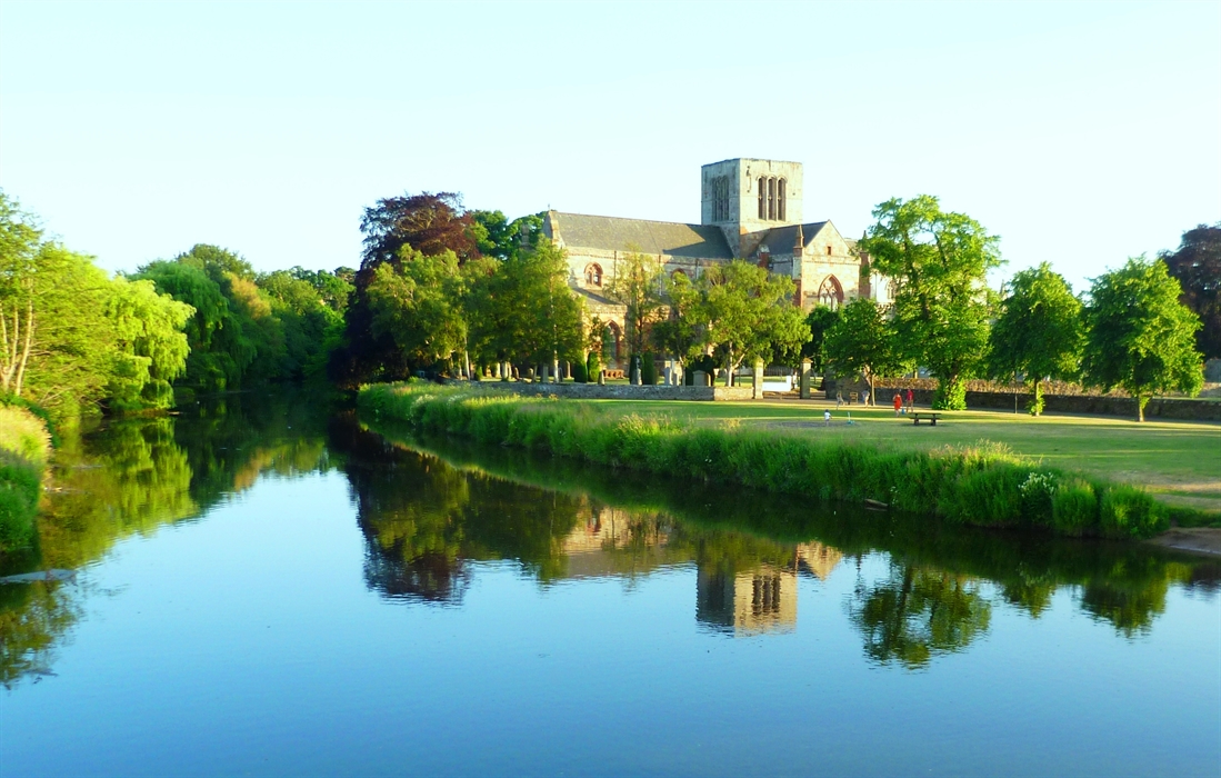 A few minutes walk from Haddington town centre is the remarkably restored, very fine 14th century church of St Mary. Of cathedral proportions, it lies beside the beautiful River Tyne Riverside Walk and near to the medieval Nungate Bridge. Wide, sunny and grassy banks and the adjacent St Mary's Pleasance Garden make wonderful picnic settings. There are several eateries not far away.