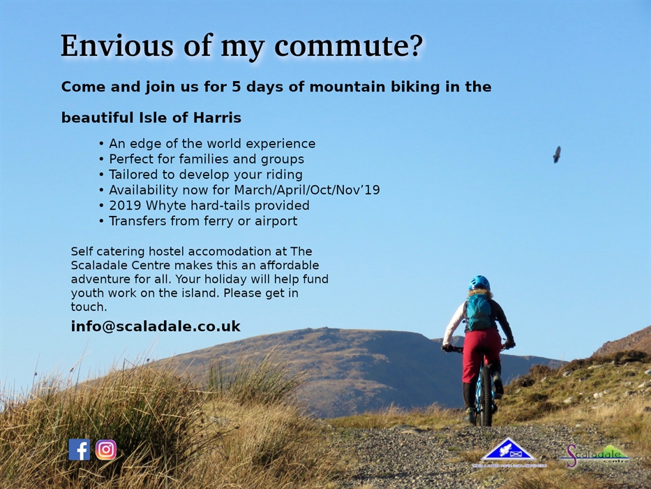 Wet and dry Outdoor Activities, Boat Trips and Mountain Bike Holidays in Harris. Groups and individuals welcomed. Ice Rink in winter.