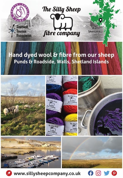 At The Silly Sheep we produce knitting wools, tweed and spinning & felting fibres in a range of natural colours & also in a range of hand dyed small batch colours. We used the fleeces from our flock of Shetland sheep and also buy some fleeces from other crofters to enhance the range & the volume needed for spinning. We sell our tweed as both ready made products for you to purchase & also as fabric from the roll if you would like to make something yourself. Our wool is available in various yarn weights, in standard size balls & skeins & also on the cone. We stock knitting needles & crochet hooks, books & locally made wool wash & crafts fromother local makers.