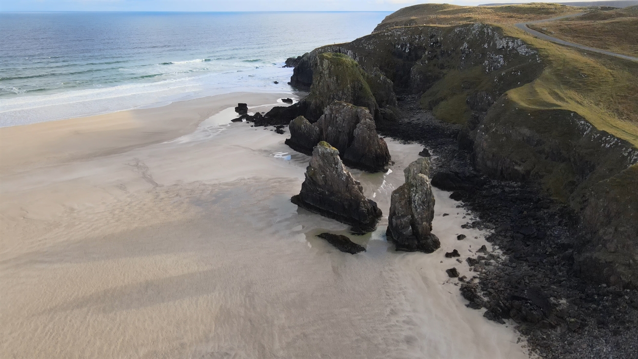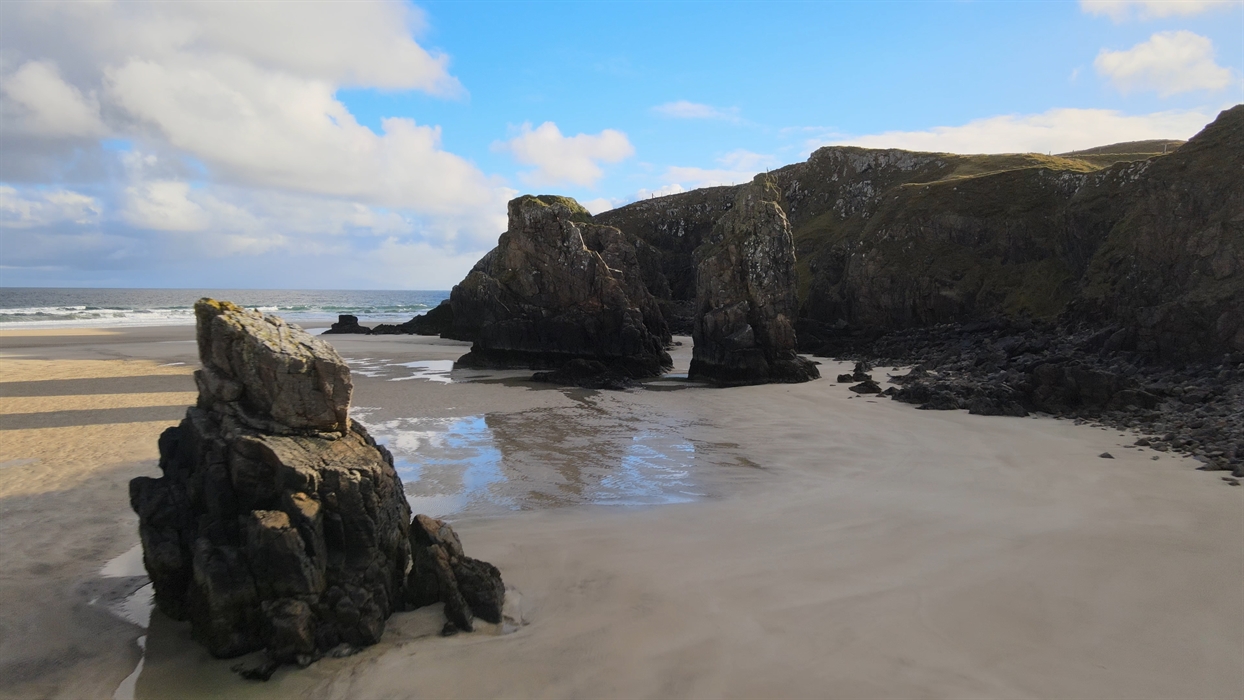 EXPLORE my favourite beach on the island, Garry Beach. A glorious expanse of sand comes into view, impressively framed by the soft peaty hills and finished by majestic sea stacs like giants teeth.