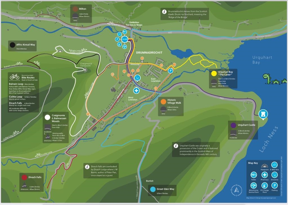 Loch Ness Hub and Travel is a community owned Visitor Information Centre based in Drumnadrochit, Loch Ness - providing tourist information, tours, cruises and baggage/luggage transfers along the Great Glen Way and other long distance trails in the area.