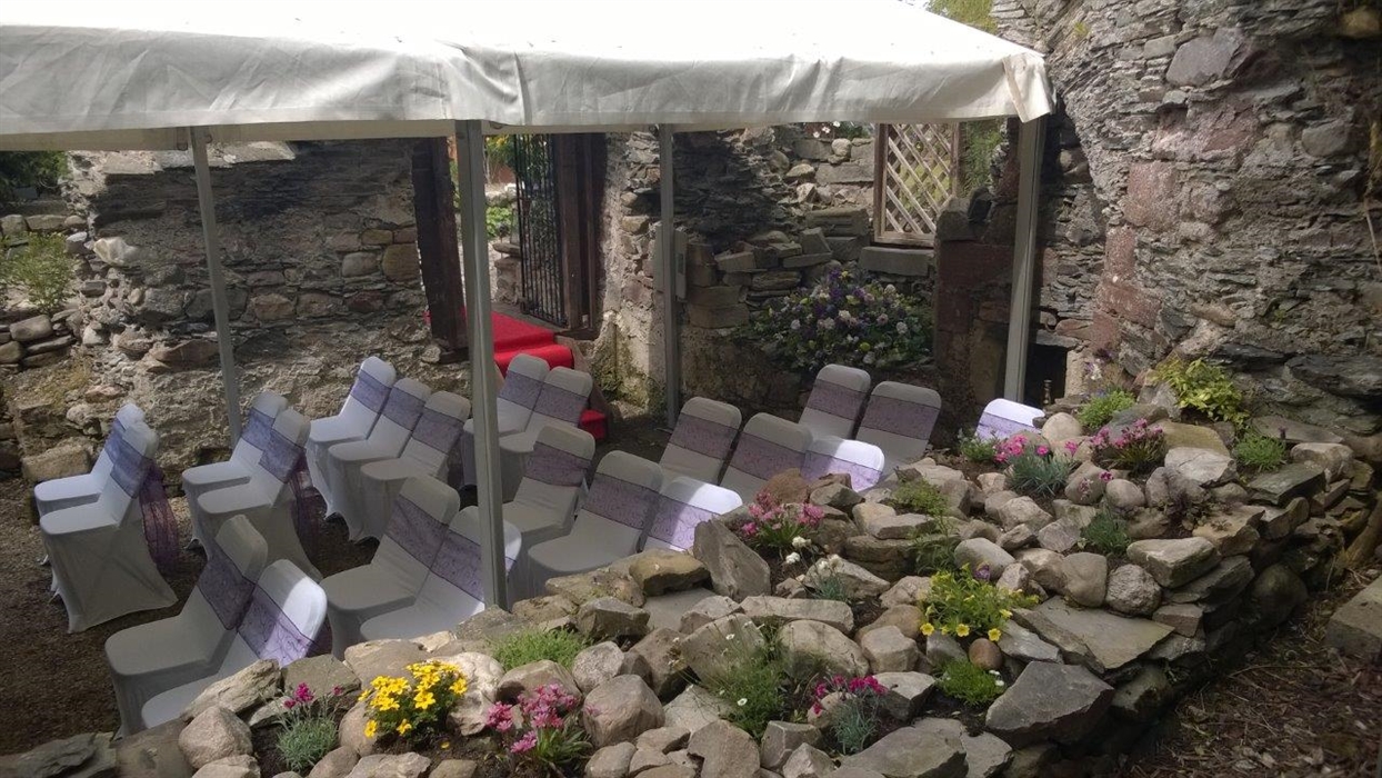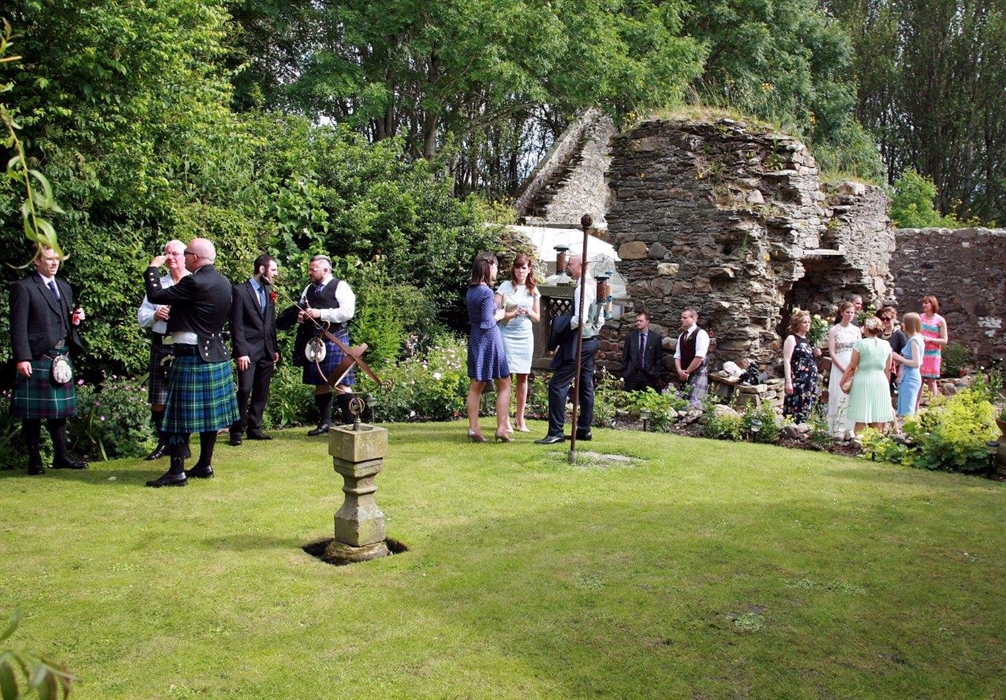 A unique and intimate wedding ceremony venue, nestled within 0.6 acres of glorious gardens and encompassing the remains of the original Deskford Castle Tower entrance and courtyard. A hidden gem.