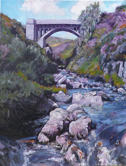 Never having broken the umbilical Caledonian cord of his childhood and those informative years spent on the Mull of Kintyre Tom returned to the solitude of Scotland’s west coast to restore his croft house and building a much dreamed of studio. His early years spent dealing in antique country furniture led naturally to an appreciation of folk art, as well as a love of old ruins and vernacular architecture. Inspired in his oil painting by the Newlyn and St Ives school of art he never lost sight of the irrisistable charm and artistic innocence of the naïve. His exceptional creative talent combined with the lack of any academic training has produced a truly unique artist.