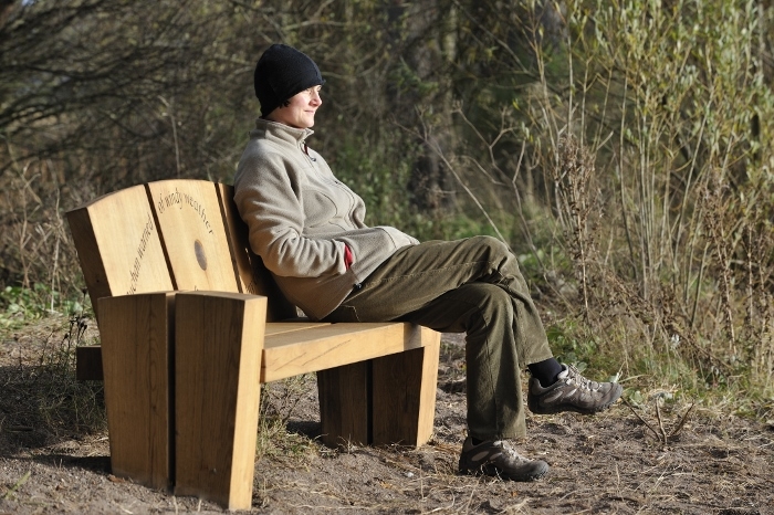 Also installed at the Kinross Mill end of the Trail is a Railway Heritage feature by Elements Creative Workshop from Duns which is a picture engraved onto wood of an old photograph of a railway engine standing on the exact spot of the old Kinross railway sidings. Another feature that has been added since the trail opening is the Sand Martin bank. You can find this installation around 500 metres from the Mill junction between an existing pond and the new pond with the seat looking over to the Castle. We have had reports of Sand Martins in the area but no sightings of it being used yet.