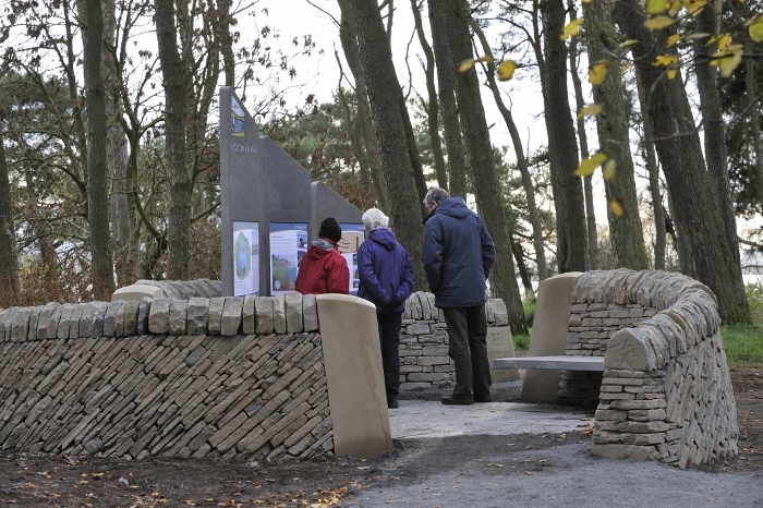 After ten years of planning and hard work, the trail is now complete and the complete circuit of Loch Leven is now fully open to the public. The last of the interpretation art is in place. These include two sculpted engraved stone benches outside the East Brackley Viewpoint accompanied by a stone sphere one metre in diameter which has engraved on it a selection of the migratory birds that visit Loch Leven. The artist for both works was David Wilson from Perth.
