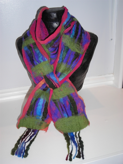 Sue dyes silks and velvets and then transforms them using an embellisher, machine and hand embroidery.