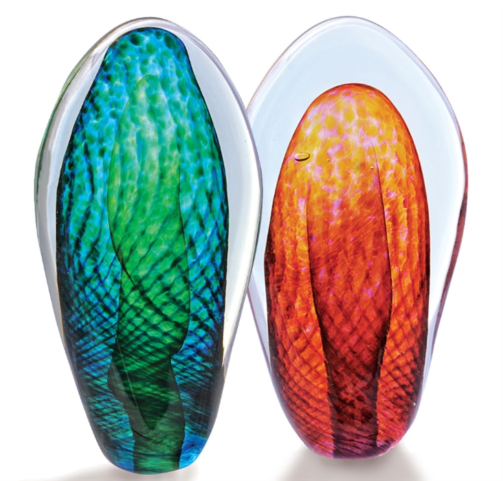 Jane Charles blows wonderful contemporary pieces in mouth watering colours from her Newcastle Studio. Her perfume bottles, vases and paperweights and bowls are avidly collected across Brittain. We are also lucky enough to be able to exhibit Janes sculptural work from time to time.
