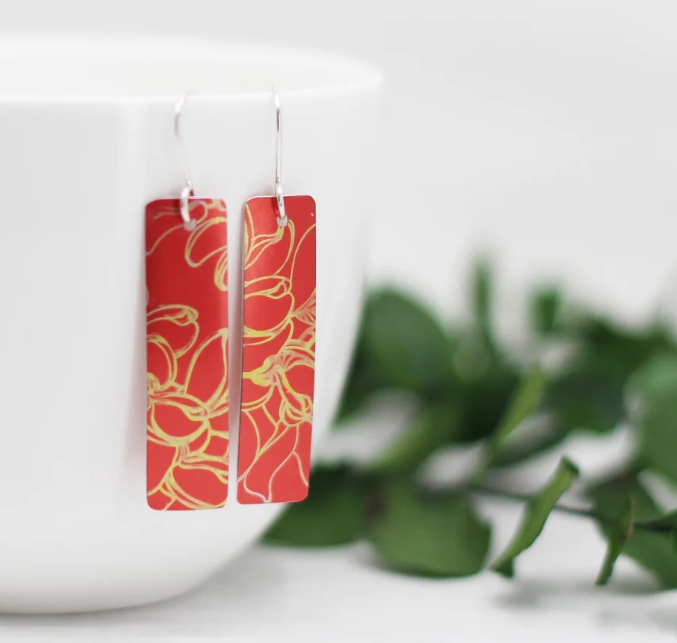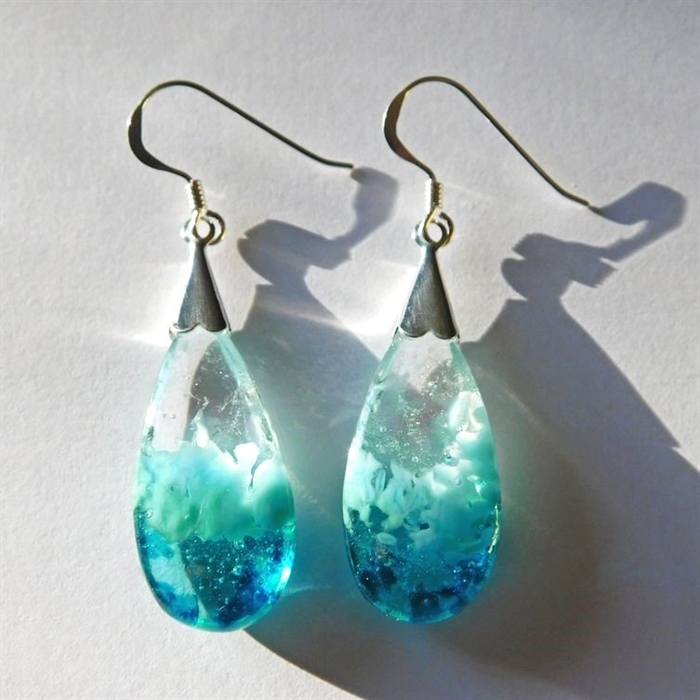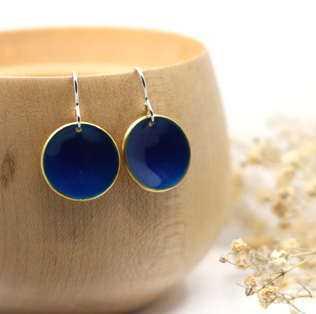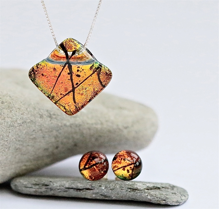Mere glass, who make wonderful dichroic pieces that shimmer and shine in a myriad of mouth watering colours. We have studs and drops often with matching necklaces.