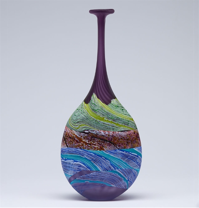 Thomas Petit, who also blows his vases and bottles in colourful lead crystal. Many of his elegant pieces are inspired by sea and shore and where they meet.